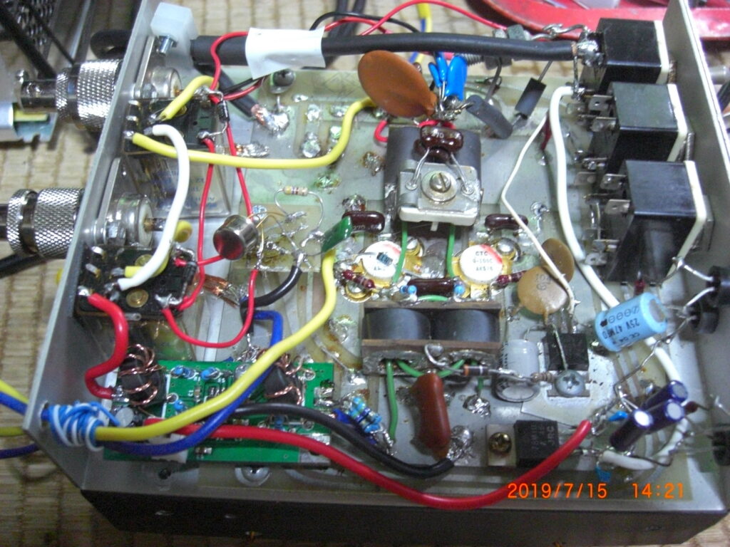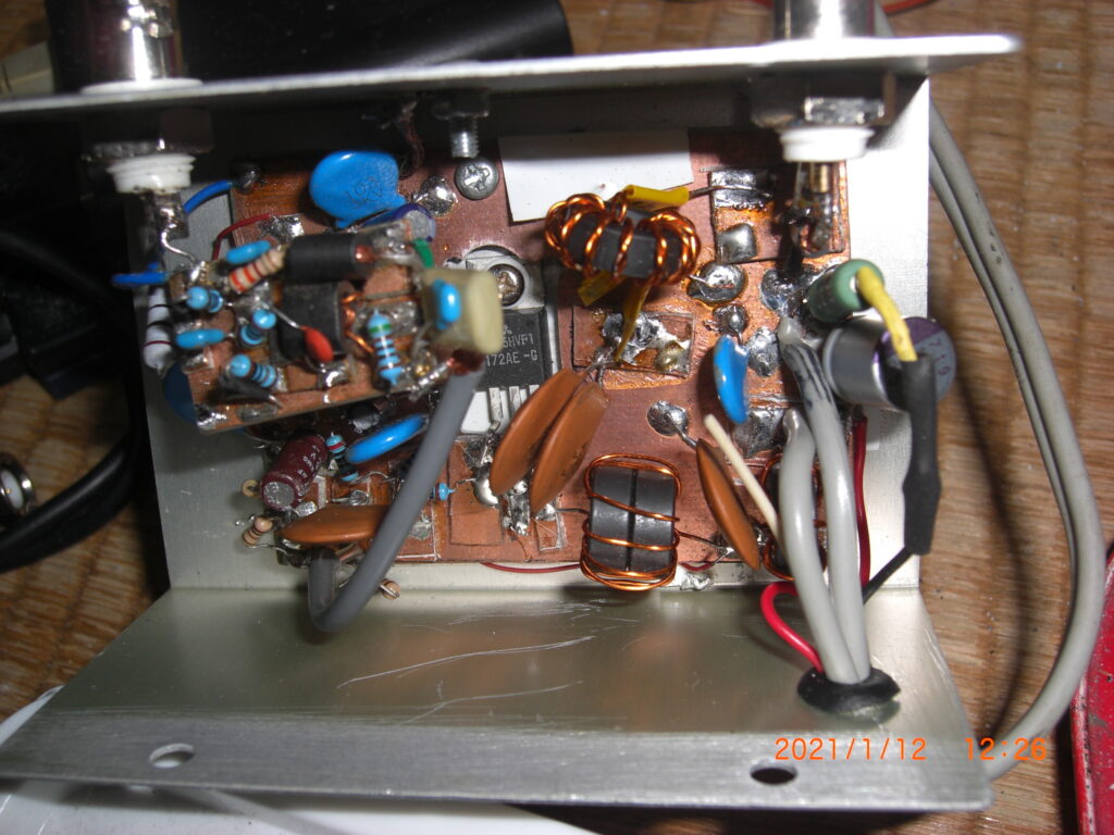 ローバンド(1.8M帯)のパワーゲインが半減することが問題であったが、入力トランスをコンベンショナル型からFT50-43を使った伝送路型に変更により改善されました。