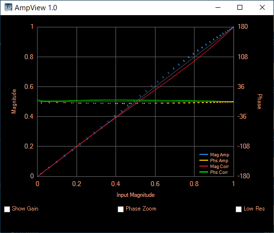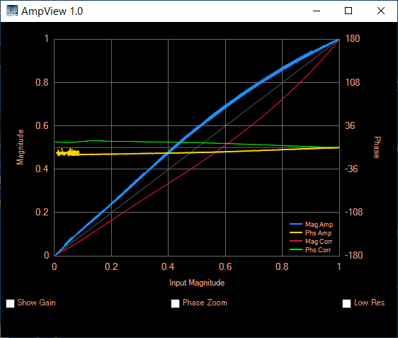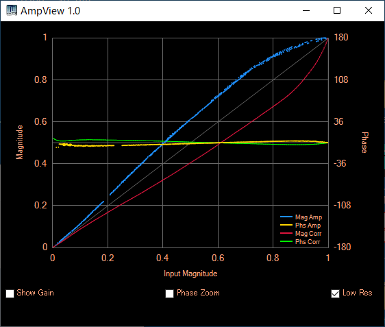 直線性特性をPowerSDRのAmpViewグラフで示します。