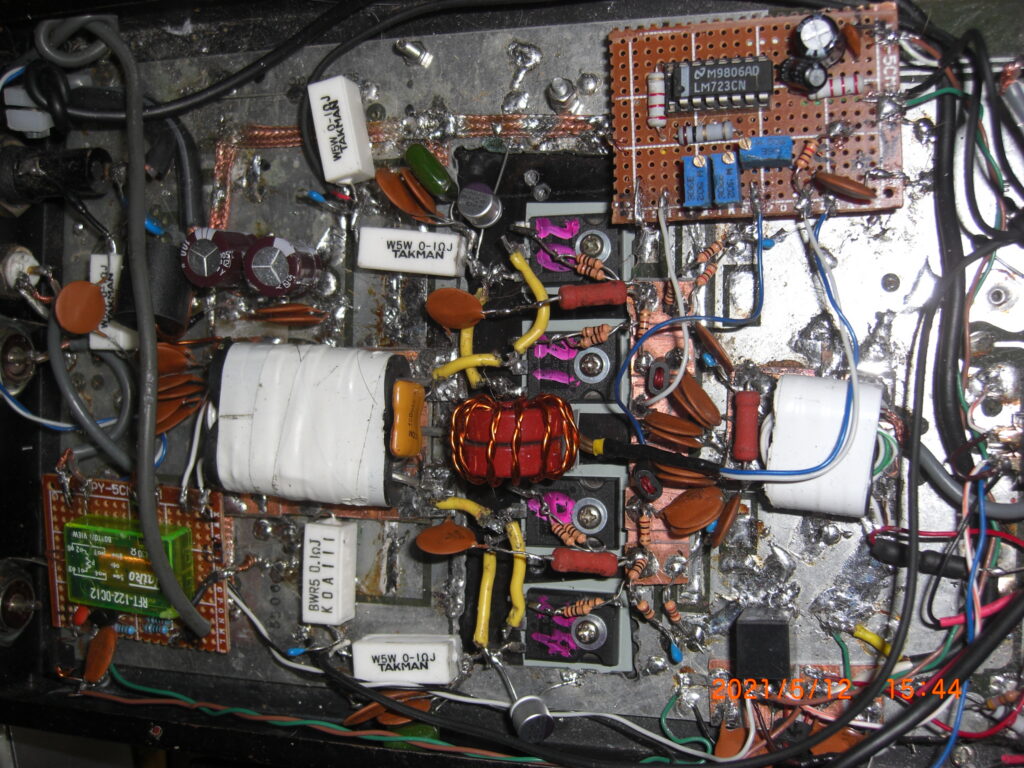 RFパワーアンプは、自作部分の1番苦心したところであり、昇天させたパワーTR,FETも多数あります。原因は、オーバドライブ、バイアス回路の不備、はてまた不注意な無負荷でのご運転など様々ですが、これもまた授業料の内と思っています。