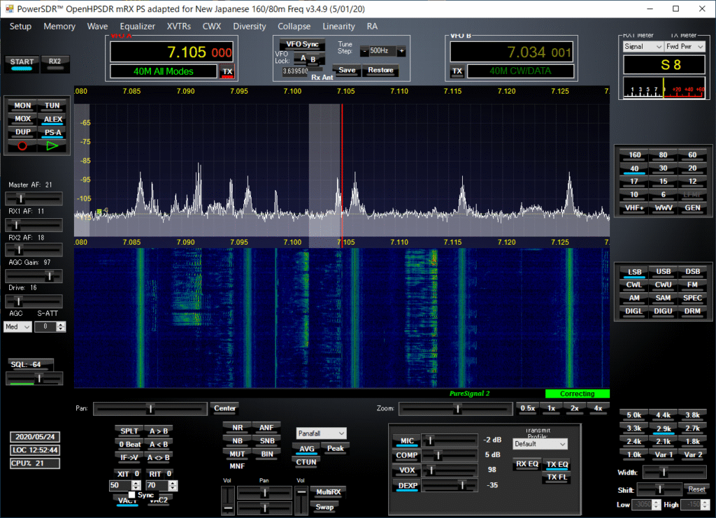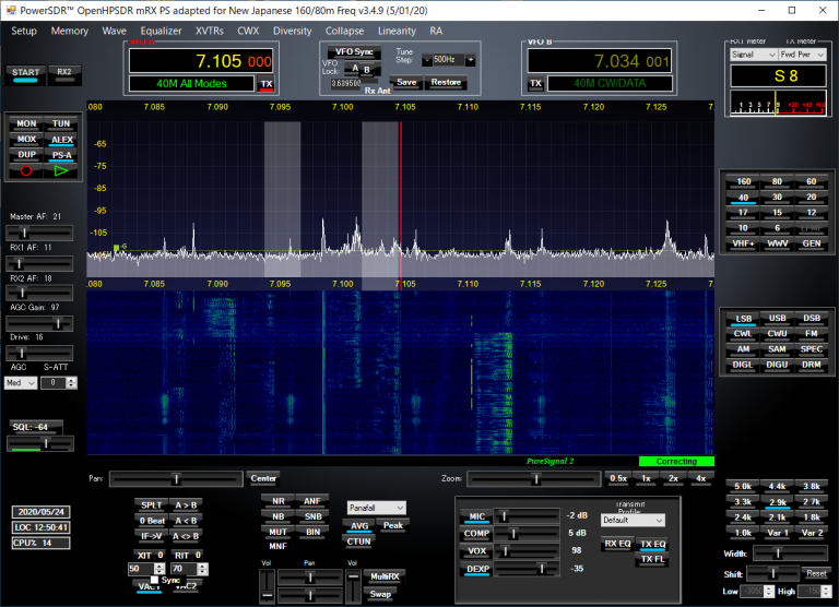 無線局再開後は、OM諸氏のアドバイスで現在はRedPitayaによるSDRトランシーバを約半年使用しています。PowersdrのRX2を使ったDiversity受信機能でこのインバータノイズをキャンセルできないかと考え実験してみました。効果はテキメン、前述のアナログキャンセラーより低減効果は絶大でした。以下で、その方法等を示します。