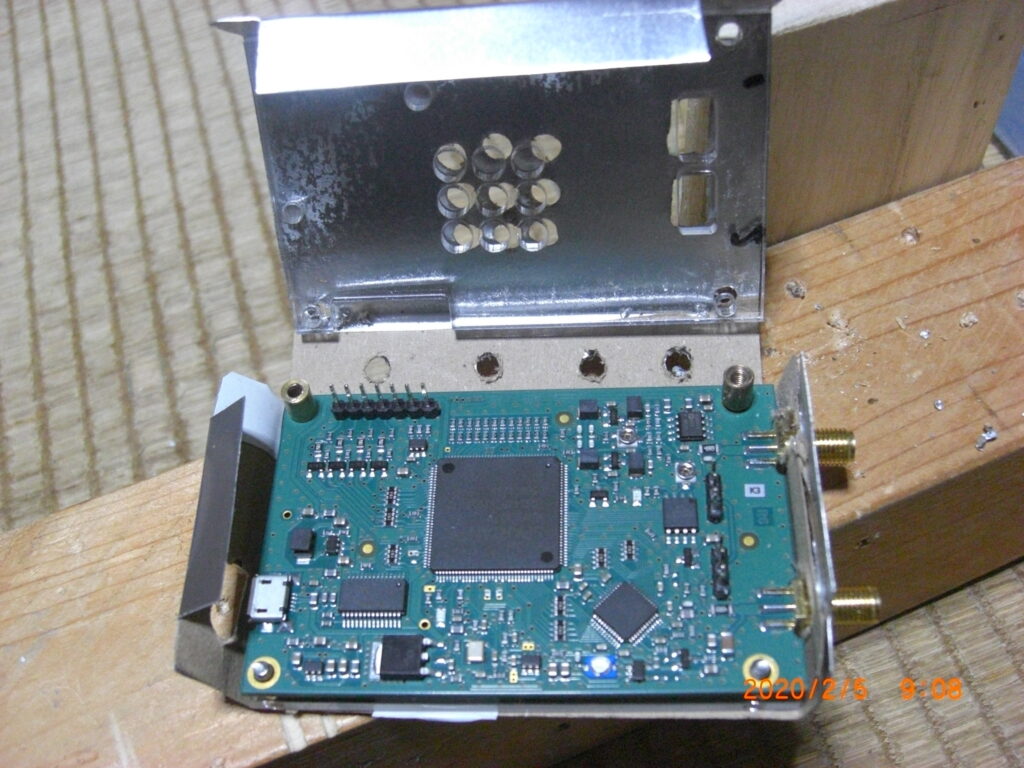 透明アクリルでサンドイッチしたケースでは、ノイズに対し無防備と考えアルミ板で簡単なケースを作製してみた。機能的には、オシロ、SSG、スペアナ、FRA(Frequency Responce Analyzer)、Antena analyzerとして使用できるとある。