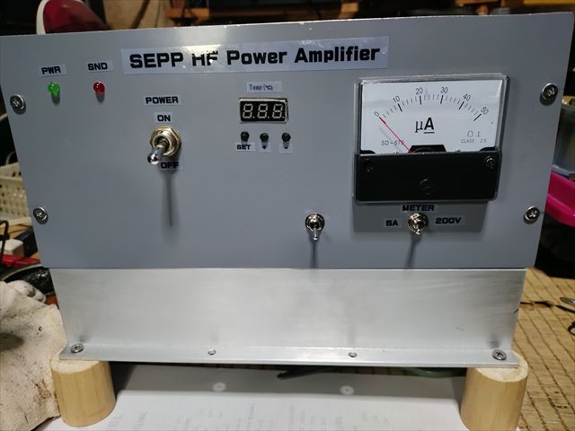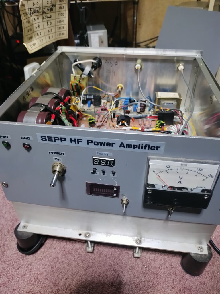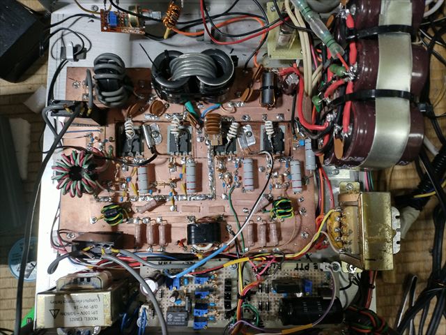 100W程度のリニアアンプを目標に製作を始めた。たまたま、知り合いに依頼されたオーディオアンプ(SEPP)の修理がきっかけでRFリニアアンプもSEPPで実現できないかと考えた。以下その過程の写真をいくつか紹介する。